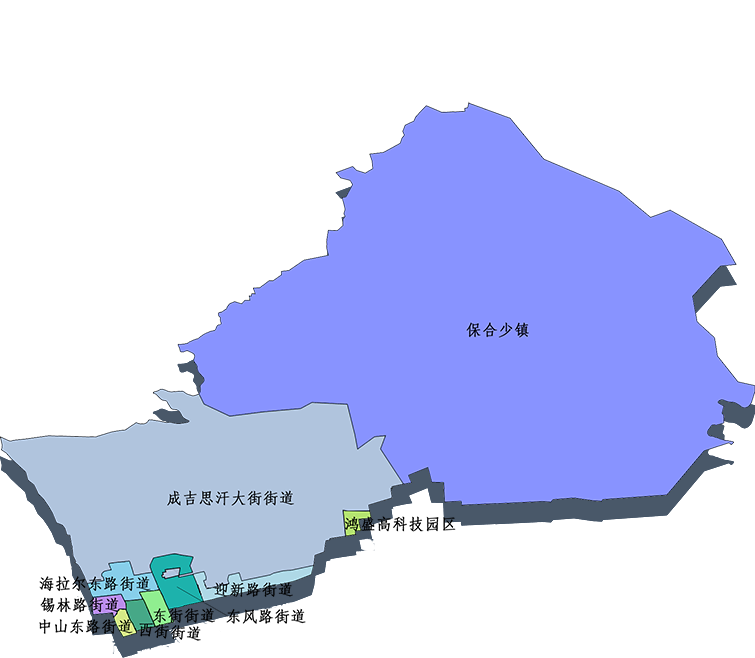 东胜区位于内蒙古自治区鄂尔多斯市中部偏东,是鄂尔多斯市经济、科技、文化、金融、交通和信息中心之一。东胜区境内煤炭资源储量约638.061亿吨,煤层厚,埋藏浅,宜于斜井或平洞开采。森林总面积64251.52公顷,森林覆盖率29.81%。总面积2160平方千米,辖3个镇、12个街道办事处、3个开发区。2023年,地区生产总值10305051.0万元,按可比价计算,同比增长11%。其中,第一产业23955.0万元,同比增长6.4%;第二产业4515903.0万元,同比增长10%;第三产业5765193.0万元,同比增长11.6%。